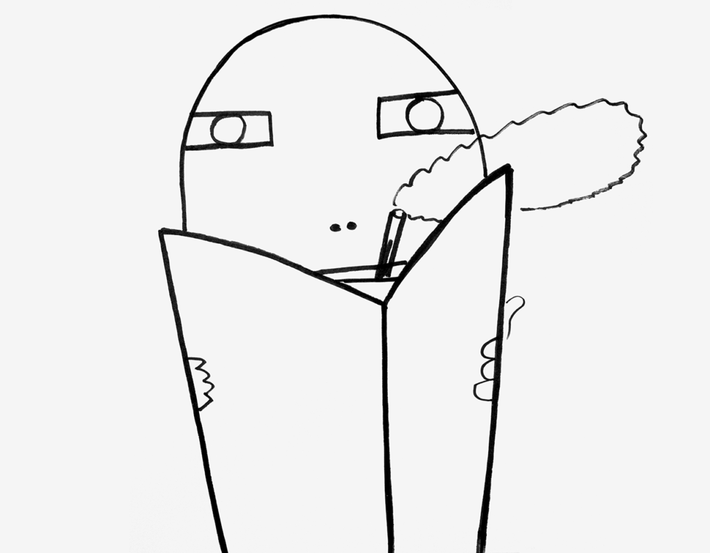 Ik houd van de eenvoud van een zwarte lijn op een wit vlak. Door me bewust te beperken qua techniek en beeldmiddelen, wil ik juist veel losmaken. Een zwarte lijn op een wit vlak geeft veel ruimte en schept mogelijkheden om te experimenteren.
